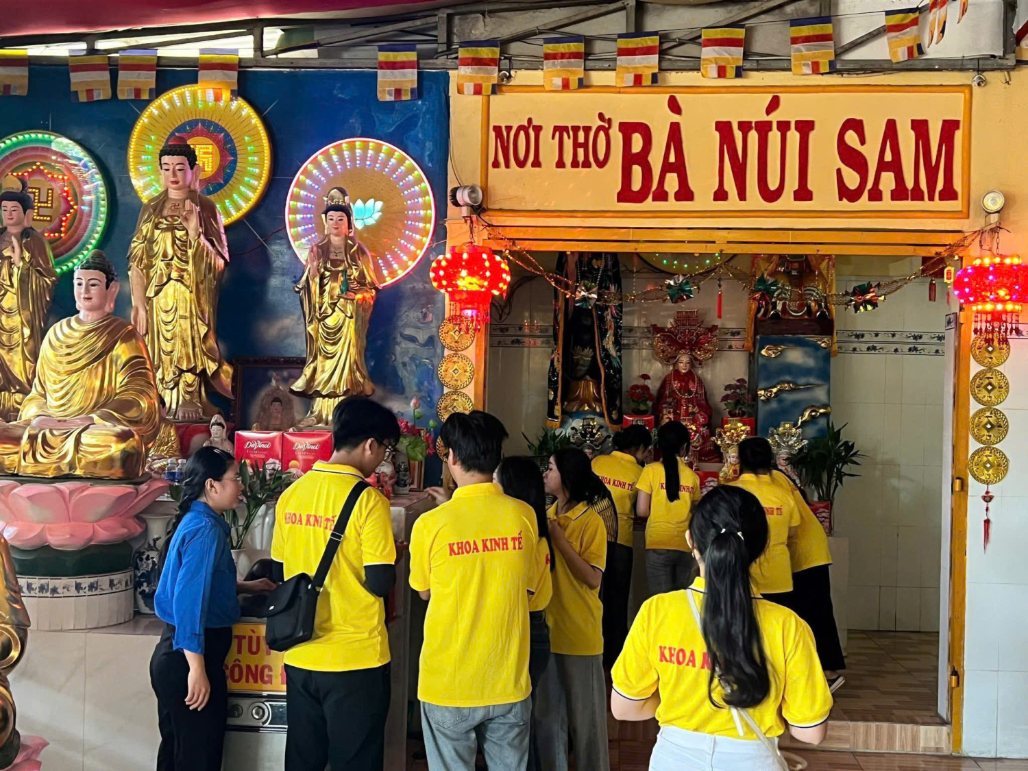 Trước khi kết thúc chương trình, tập thể Liên Chi đoàn TCNH đã thắp hương tại nơi thờ Bà Núi Sam trong khuôn viên cơ sở, bày tỏ lòng thành kính, sự tri ân và gửi gắm những mong ước tốt đẹp cho tất cả.
