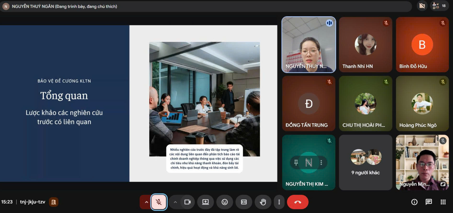 💻 Dù diễn ra trên nền tảng Google Meet, nhưng sức nóng từ những cuộc thảo luận, phản biện giữa Hội đồng các bạn sinh viên vẫn vô cùng hấp dẫn.